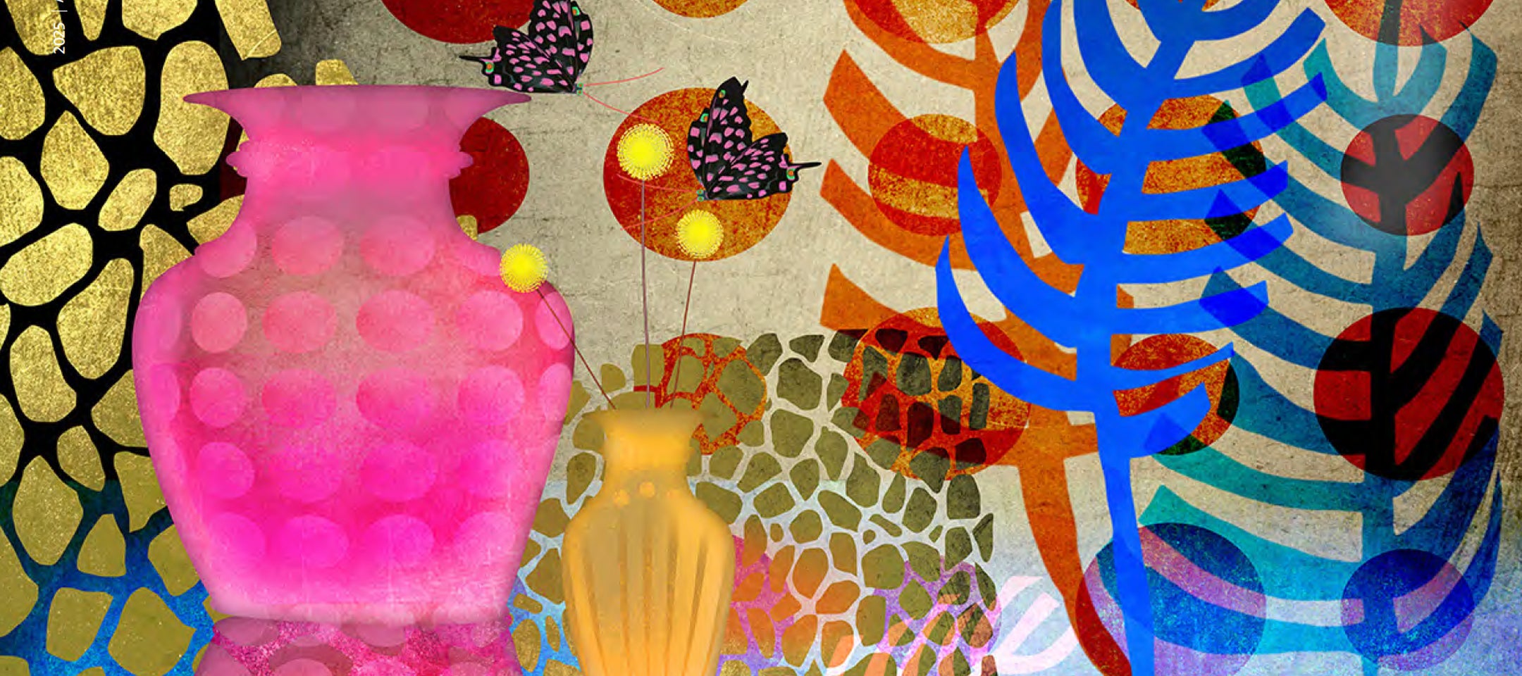 Sarah Arnett is an acclaimed contemporary artist, illustrator, and designer whose practice spans fine art, textiles, and interiors. Celebrated for her fabulously eclectic aesthetic, she conjures worlds of colour and exoticism, busy pattern and bold ornament—a vision of pure escapism.
